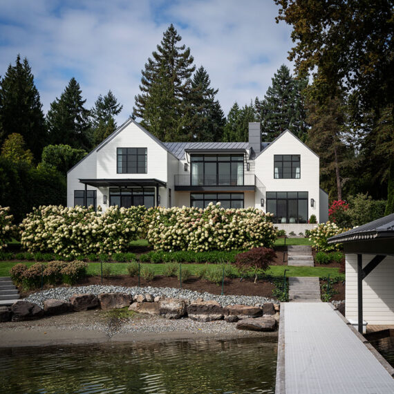 Situated on a long, sloping lot along the shores of Lake Washington, this contemporary home was designed for a family of five seeking a spacious, light-filled, and serene environment. The design balances modern minimalism with the warmth and comfort of traditional elements, resulting in a home that is at once clean, inviting, and thoughtfully composed.